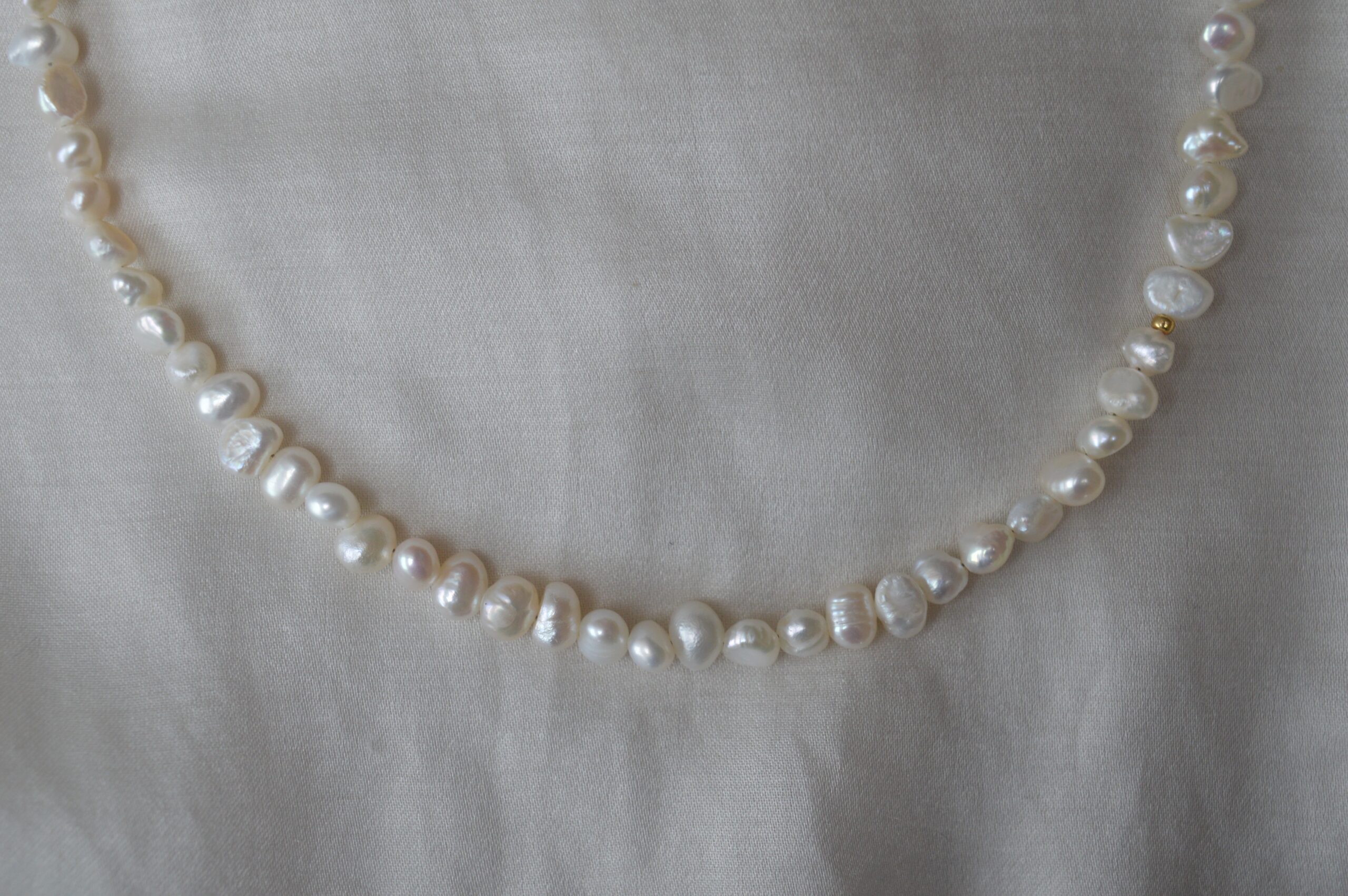 ASTA er en smuk halskæde lavet af ægte ferskvandsperler. Alle ferskvandsperlerne er deforme, hvilket giver halskæden et unikt udtryk og dermed er alle ASTA halskæderne forskellige, da ikke to af ferskvandsperlerne er ens.