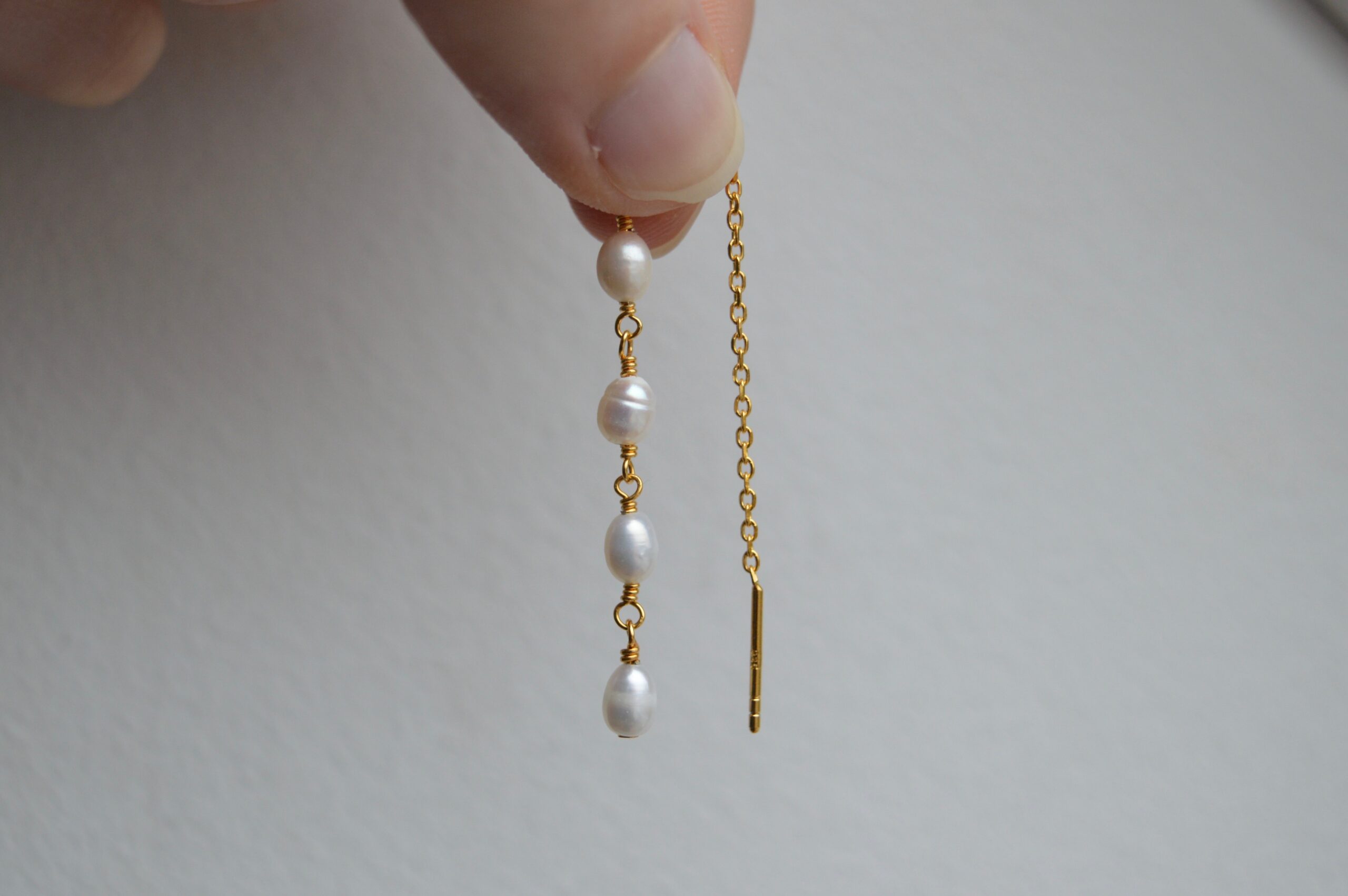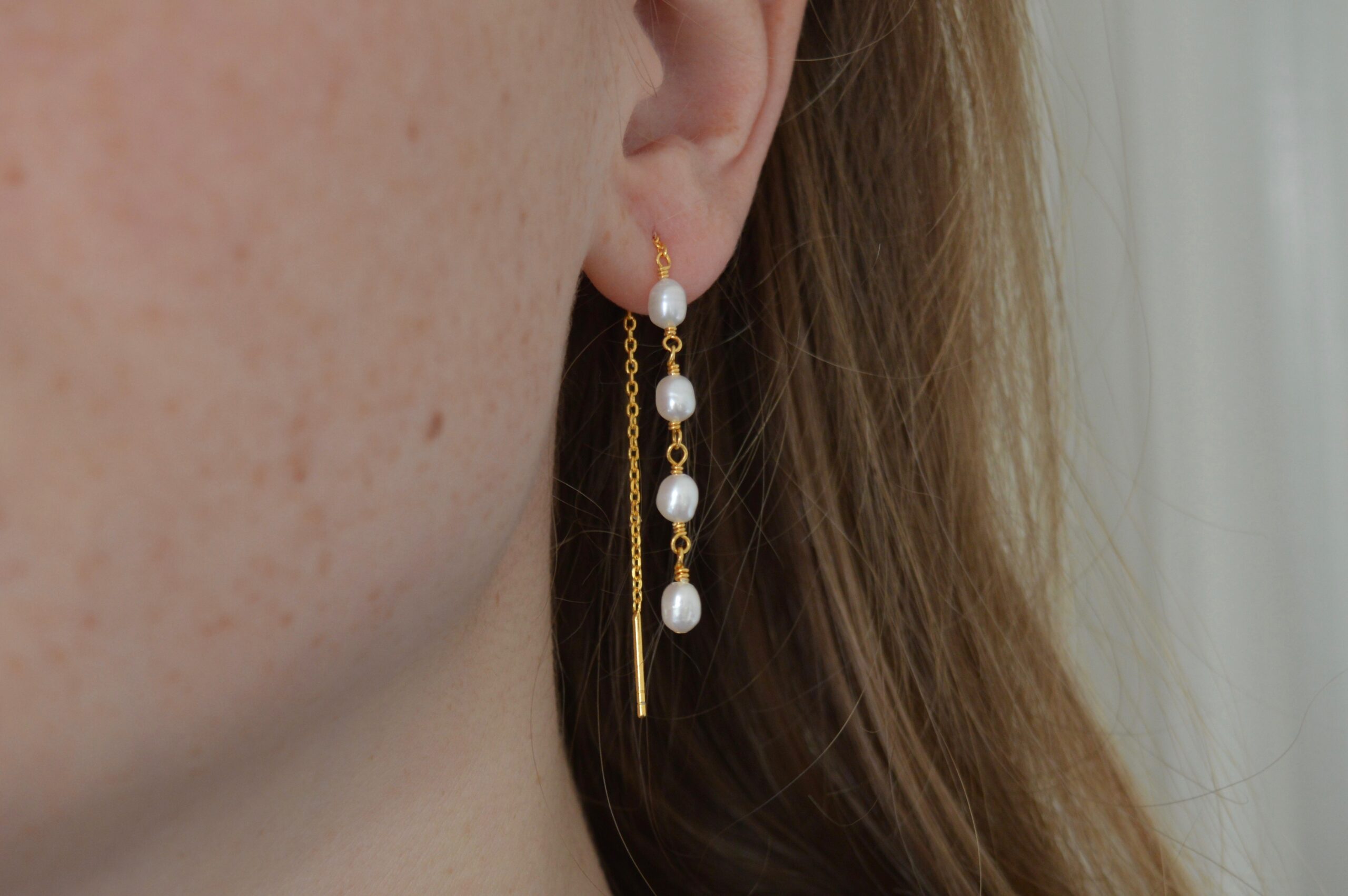 BALOU er en ørekæde af sterling sølv 925, forgyldt med 22 karat guld og fire ægte ferskvandsperler.