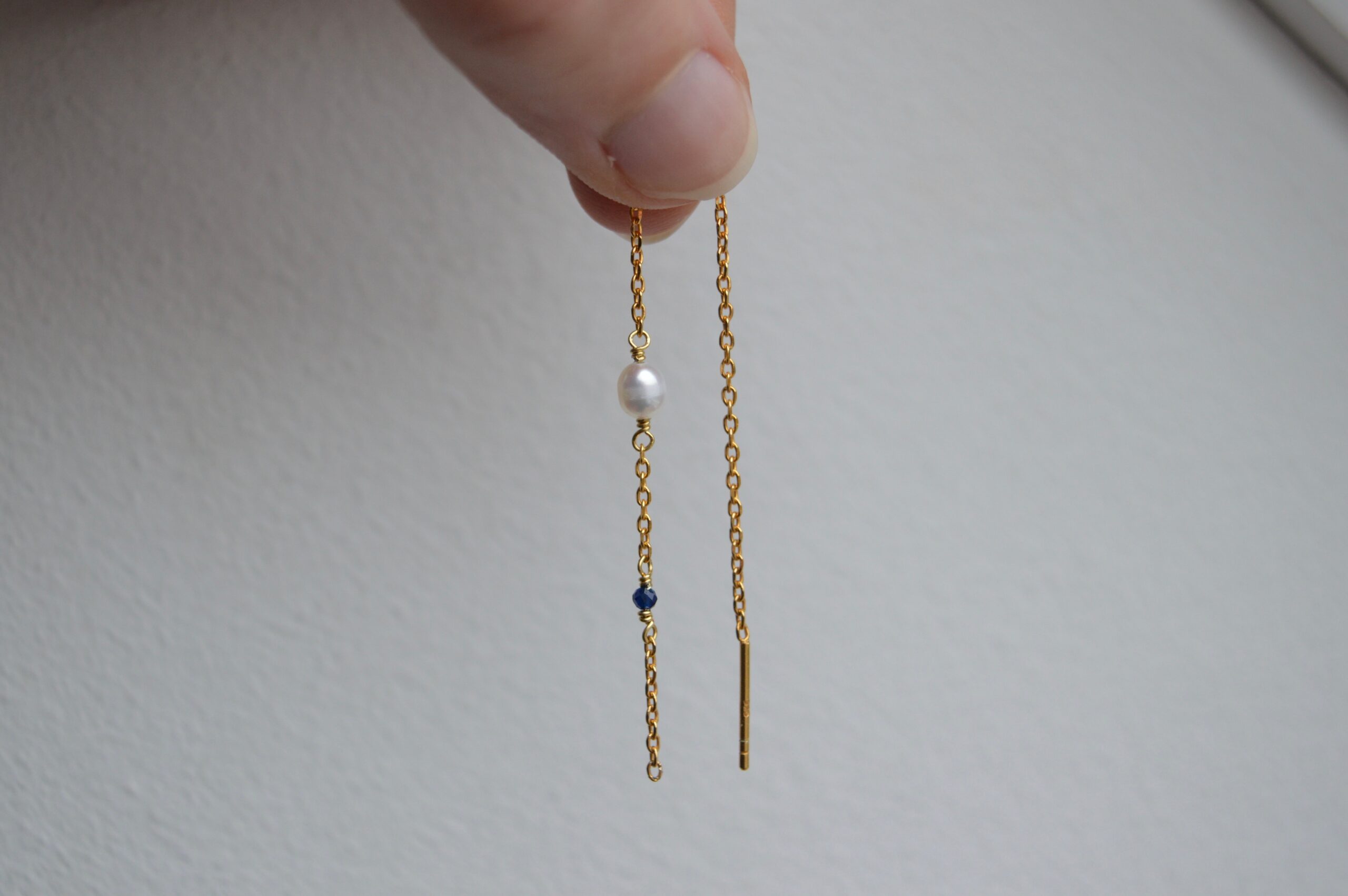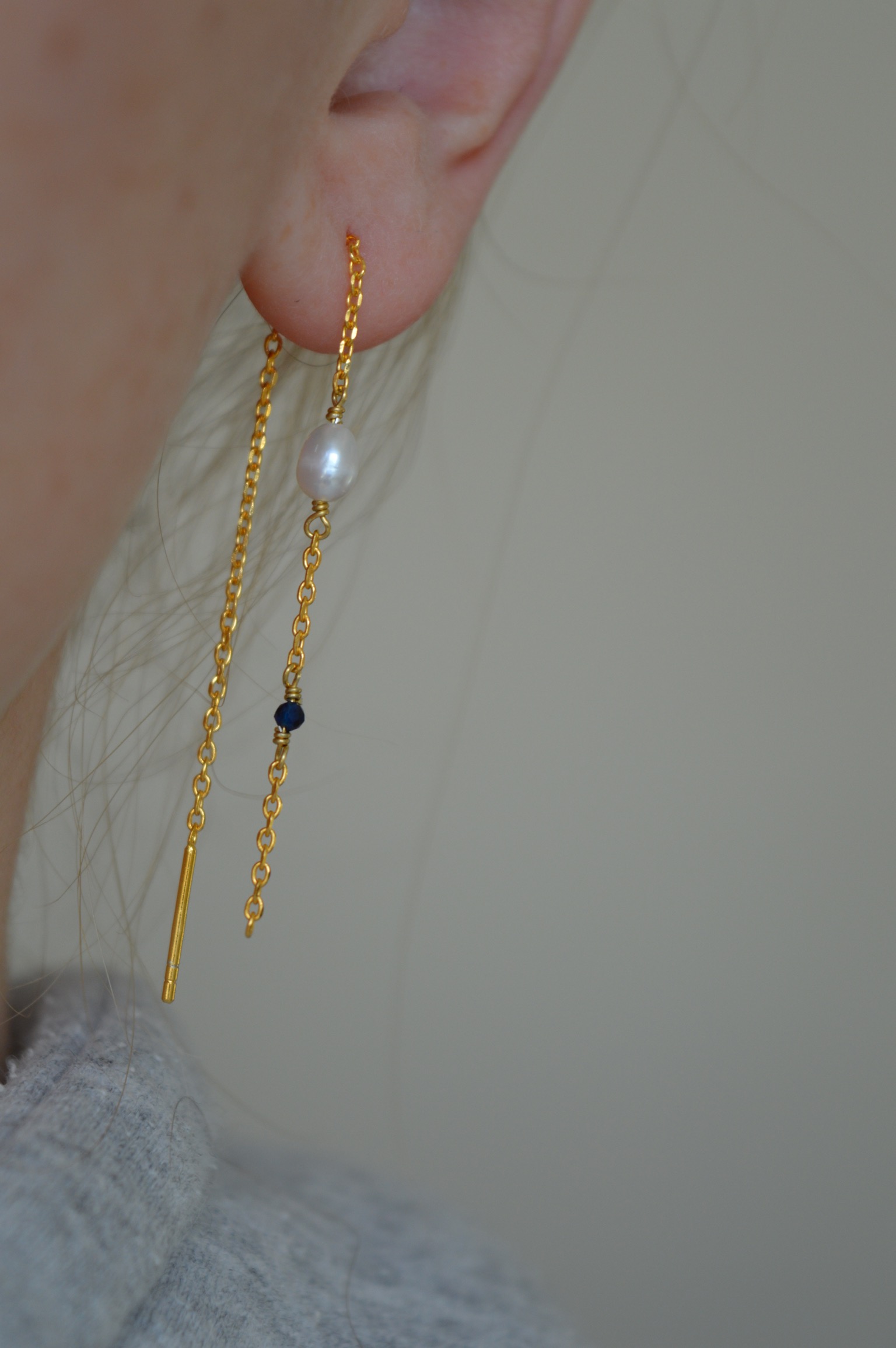 BARBARA er en ørekæde af sterling sølv 925, forgyldt med 22 karat guld. En ægte ferskvandsperle og én havædelsten er med til at give BARBARA et eksklusivt look.